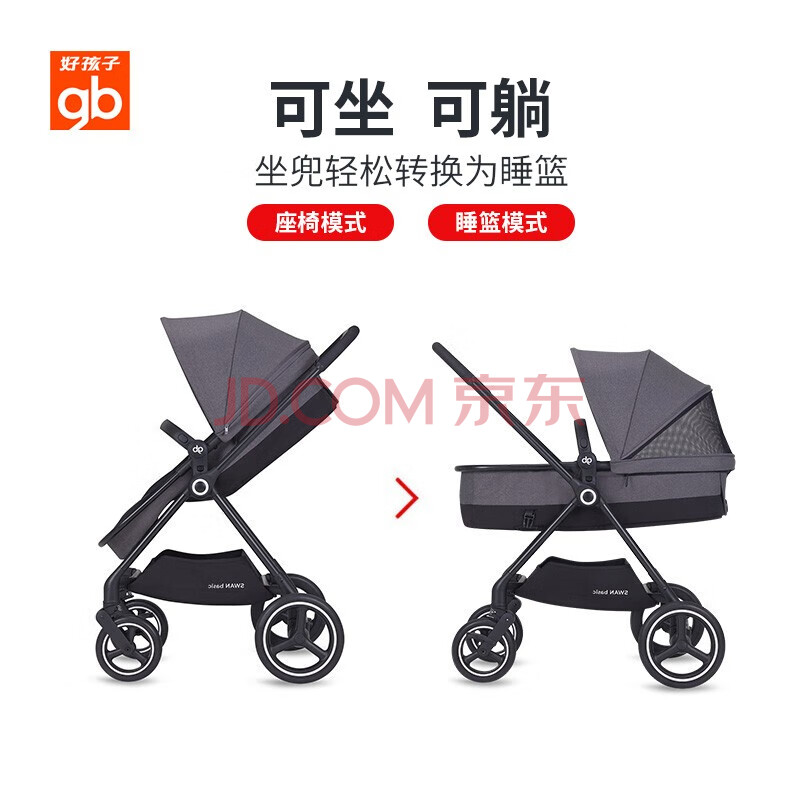 商品相册:好孩子(gb)天鹅青春版双向轻便高景观婴儿推车可坐可躺遛娃车第
