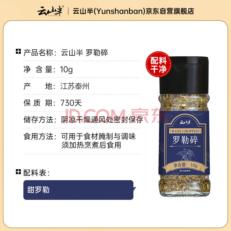 商品相册:云山半 罗勒碎10g瓶装西餐意面披萨牛排烤肉调味料腌料九层塔西式香料第