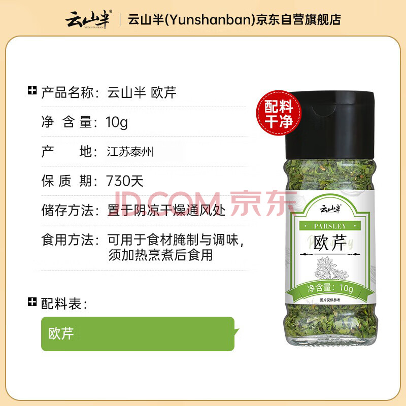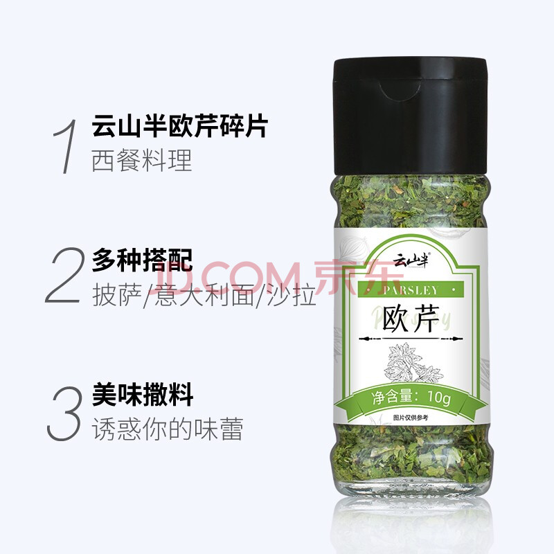 商品相册:云山半欧芹碎10g瓶装 西餐意面牛排披萨烧烤法香碎西式香料调味料第
