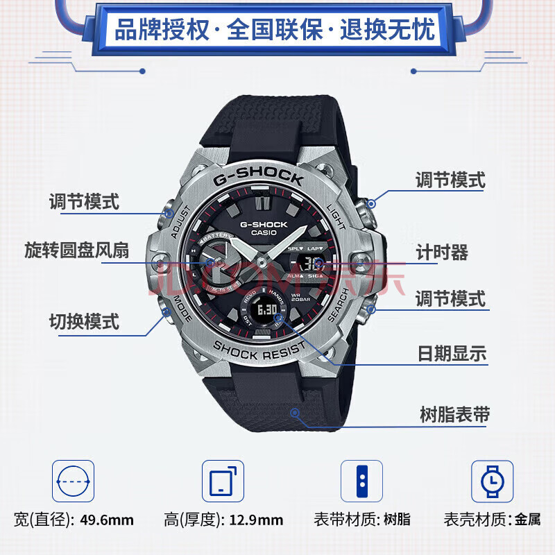 商品相册:卡西欧(CASIO)手表男G-SHOCK钢铁坚毅之心电子运动日韩表送男友GST-B400-1A第