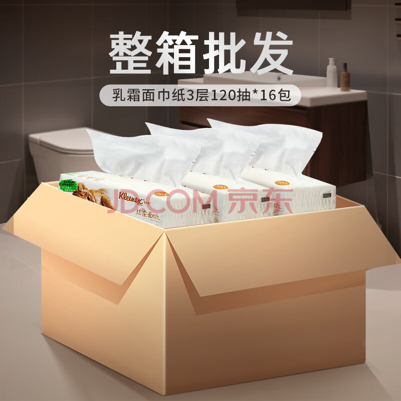 商品相册:舒洁(Kleenex)舒洁乳霜纸面巾纸纸巾擦手纸餐巾纸纸抽3层120抽*16包抽纸整箱装第