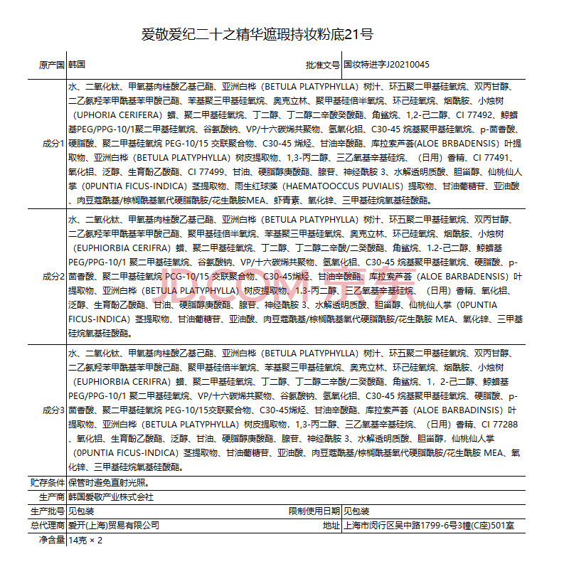 商品相册:Aekyung Age20's爱敬三色星空白气垫bb霜控油持妆遮瑕粉底油皮21#14g*2送女友礼物第