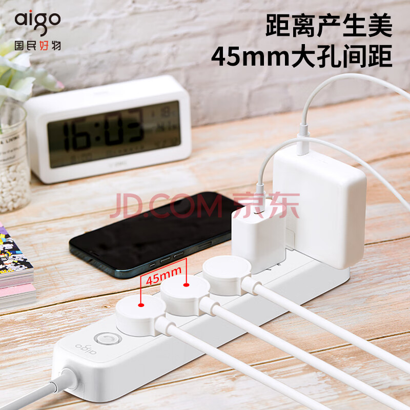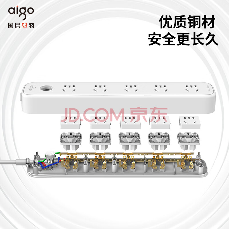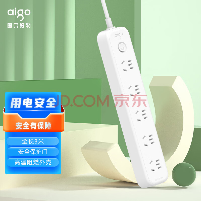 商品相册:爱国者(aigo)插座/插排/排插/插线板/接线板/拖线板 5位总控全长3米 开关/大孔间距AC0501第