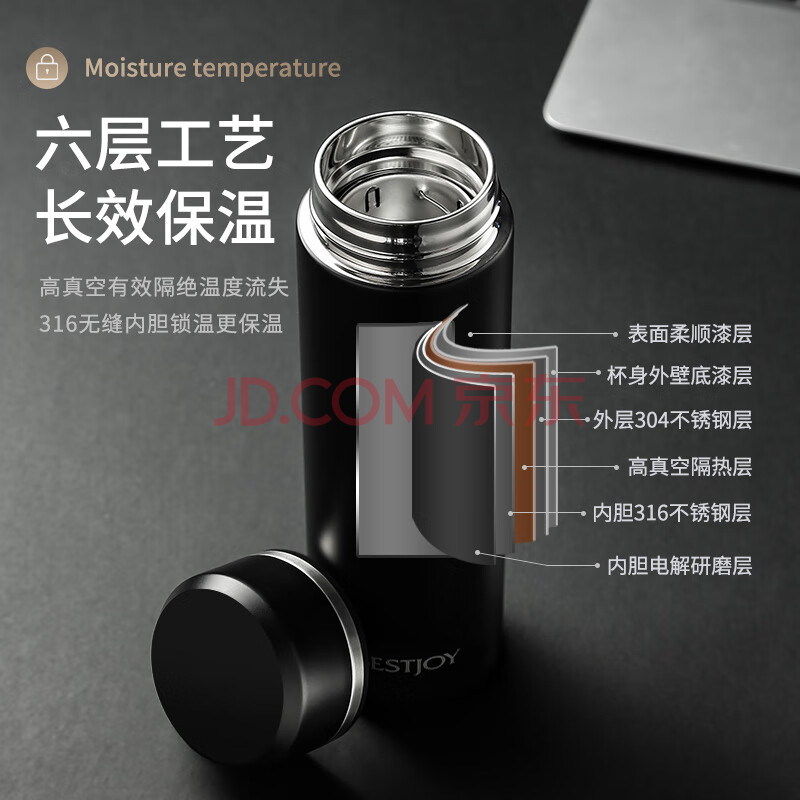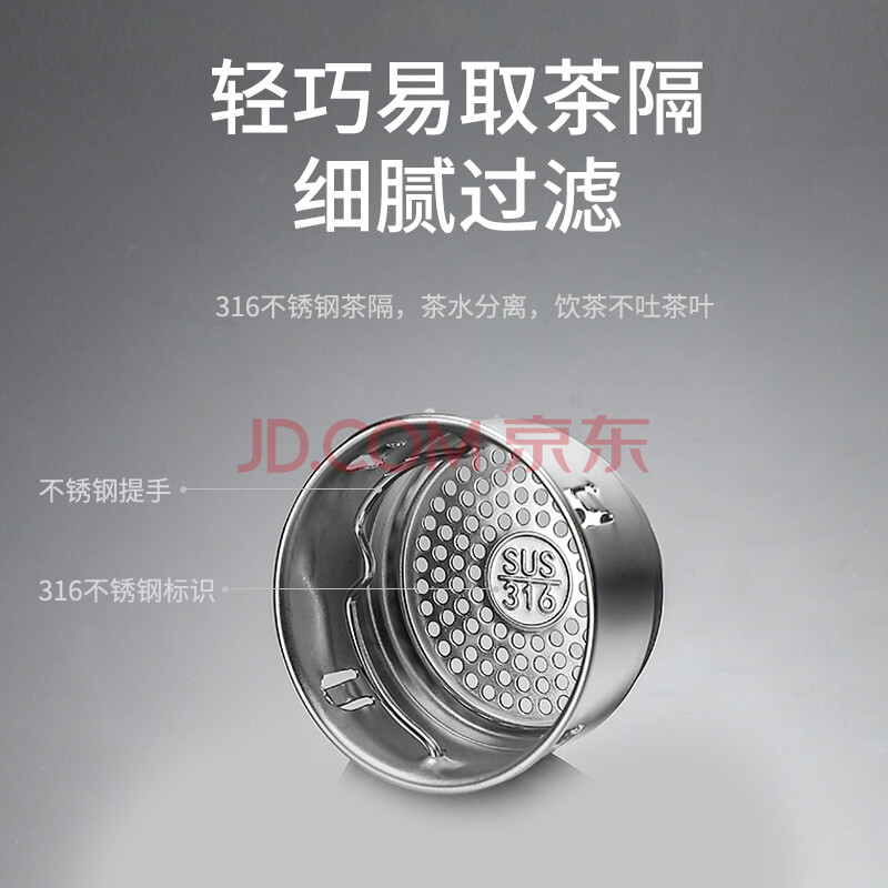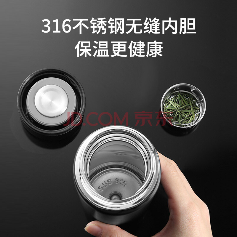 商品相册:富光拾喜保温杯316不锈钢大容量水杯带茶滤泡茶男女办公室杯子500ml简约黑第