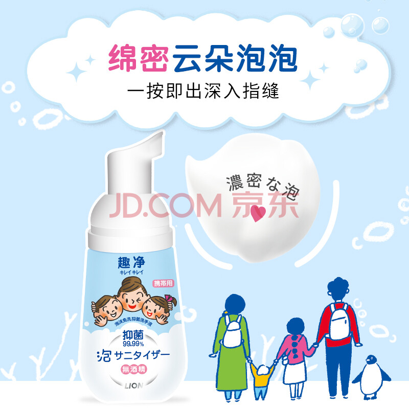 商品相册:狮王(Lion)趣净泡沫免洗抑菌洗手液50ml家庭宝宝儿童温和无酒精携带洗手液第