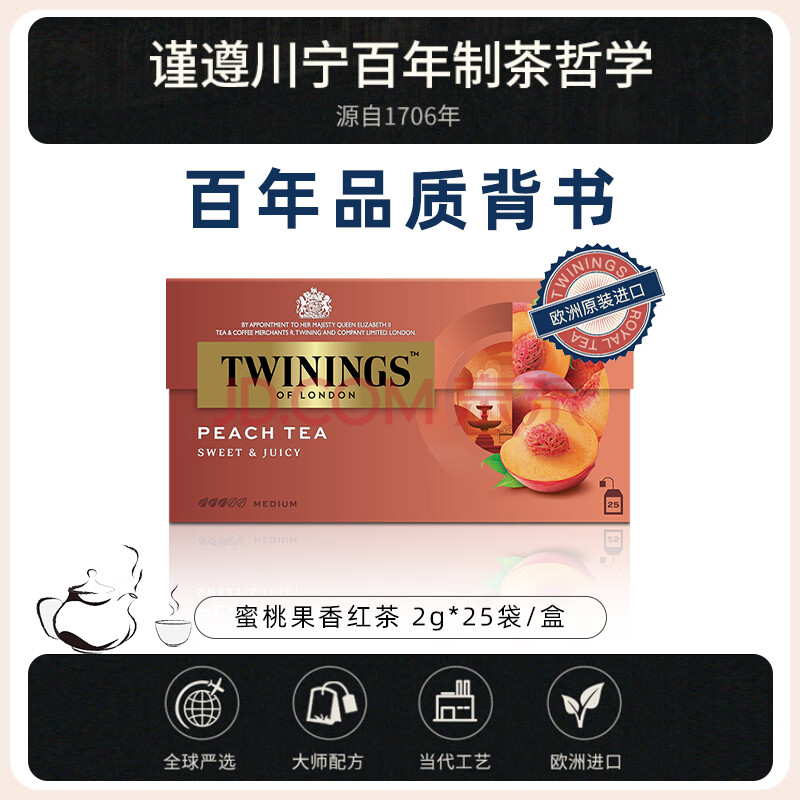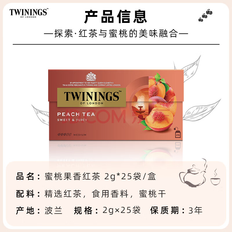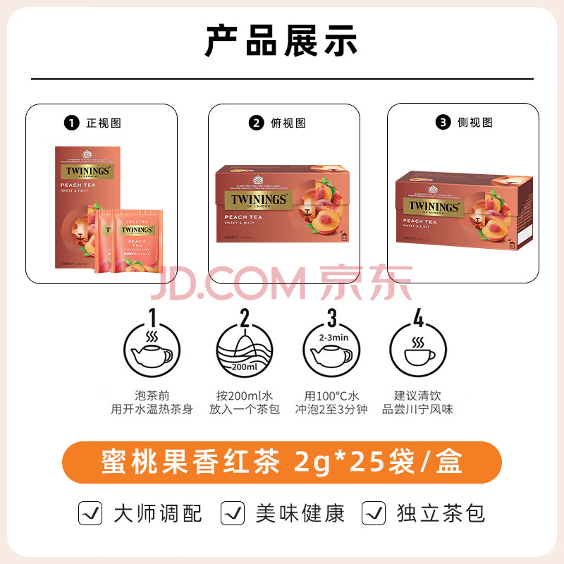 商品相册:川宁蜜桃果香红茶25袋*2g 茶包花果茶袋泡茶办公室下午茶第