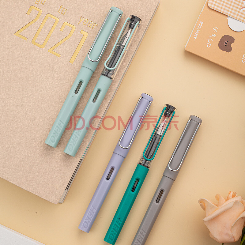 商品相册:英雄(HERO)钢笔 1359 迷你深绿 EF尖薄厚片工艺学生练字钢笔 (附加6支墨囊)铱金钢笔签字笔第