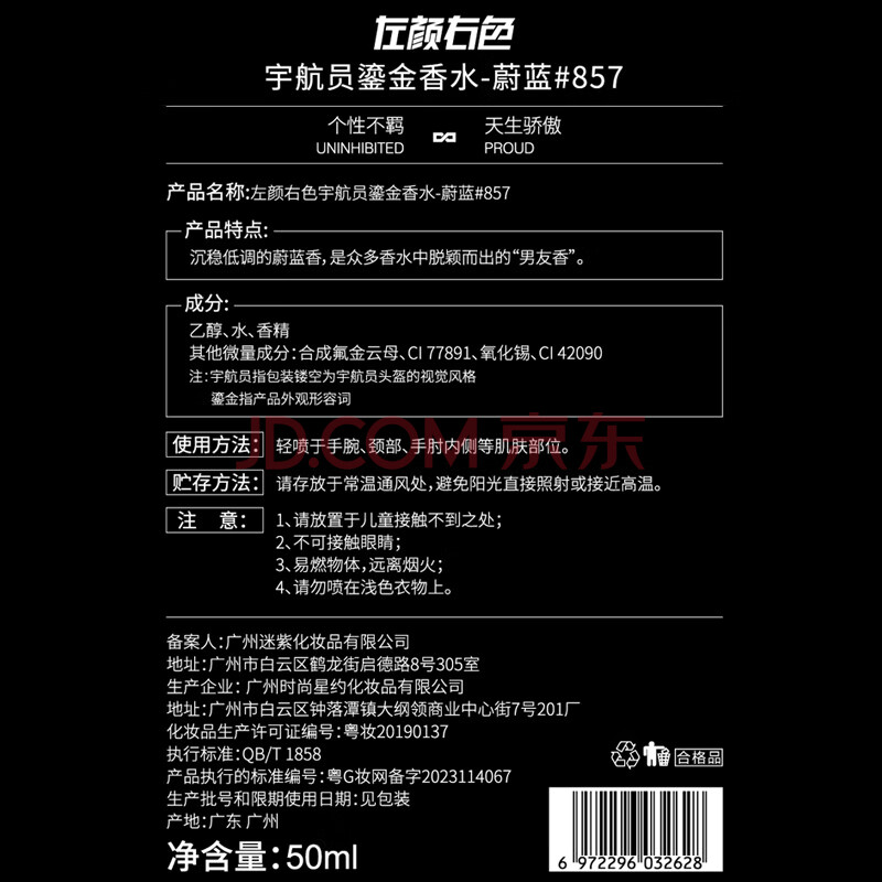 商品相册:左颜右色宇航员蔚蓝鎏金香水男50ml持久淡香男士香氛送男朋友新年礼物送礼第