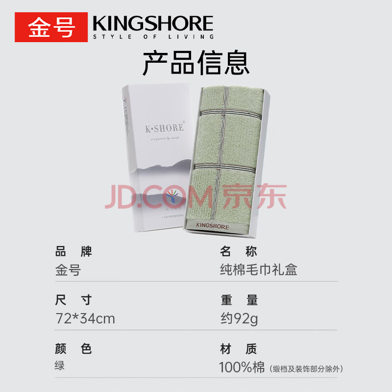 商品相册:金号毛巾礼盒 纯棉吸水洗脸巾亲肤耐用洁面巾 礼盒单条装 绿色第