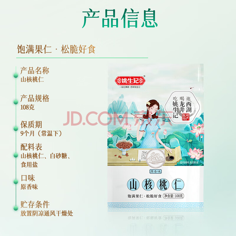 商品相册:姚生记原香味临安山核桃仁108g 香脆免剥壳休闲零食 每日坚果炒货干果仁第