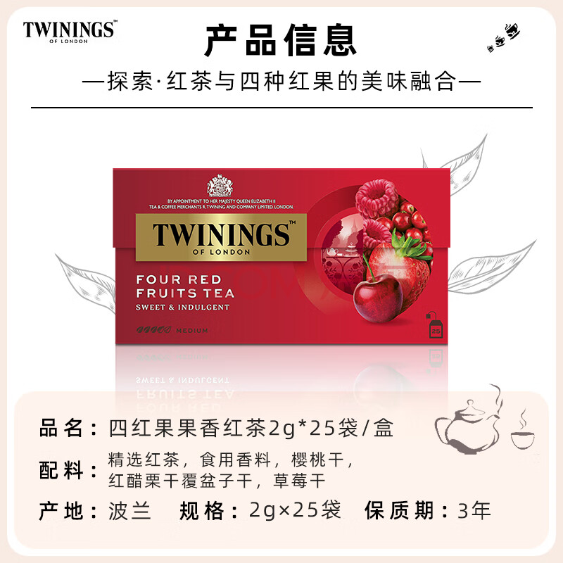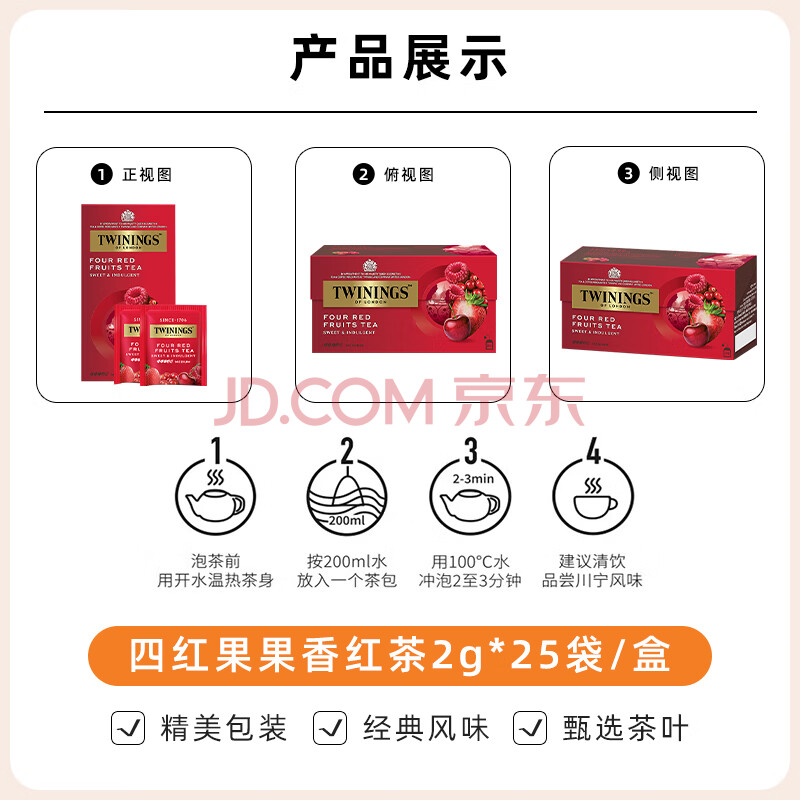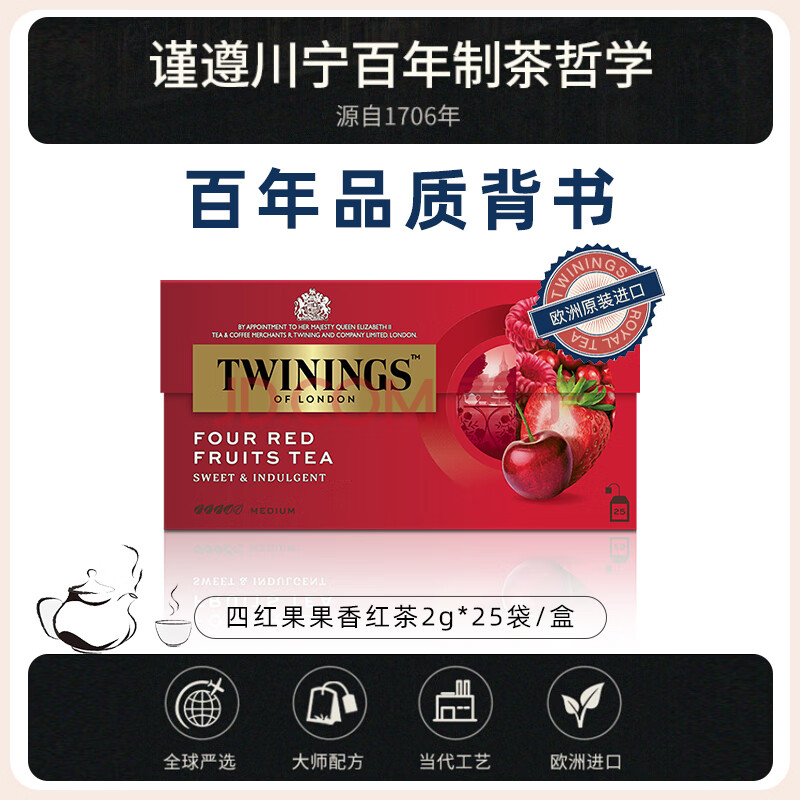 商品相册:川宁四红果果香红茶25袋*2g 水果茶茶包花草茶 办公室下午茶第