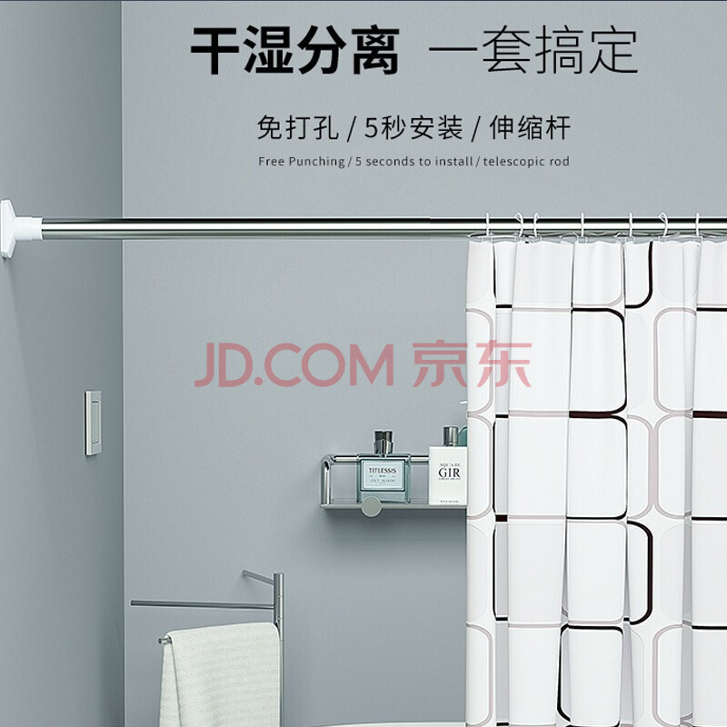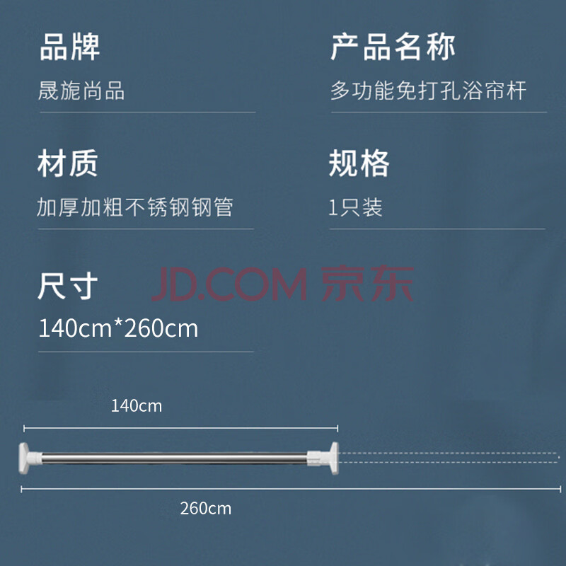 商品相册:晟旎尚品浴帘杆免打孔不锈钢伸缩杆晾衣杆窗帘杆门帘杆衣柜支撑杆1.4-2.6M第