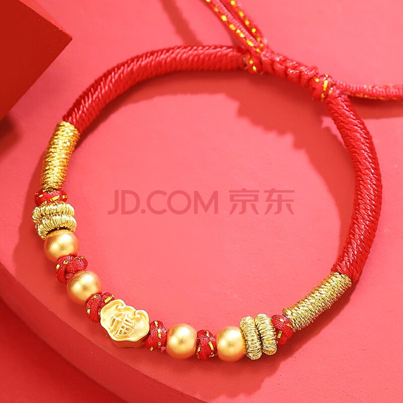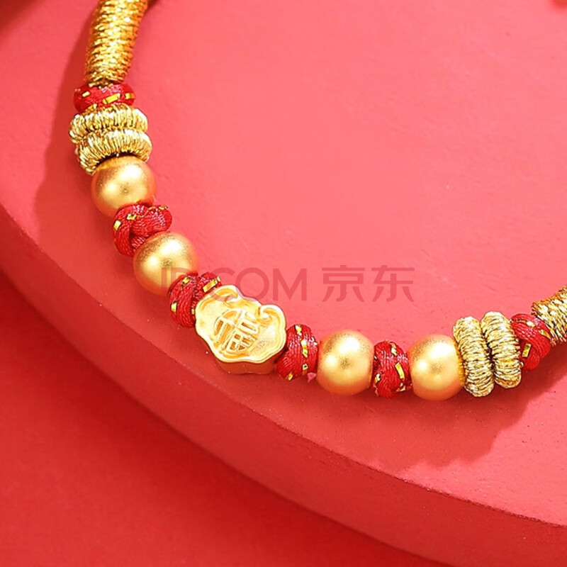 商品相册:Lossot岁岁如意福足金黄金手链宝宝款古法转运珠手链满月礼物儿童金饰第