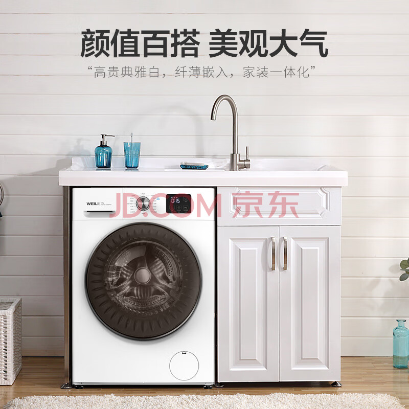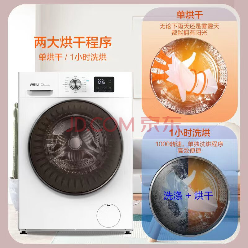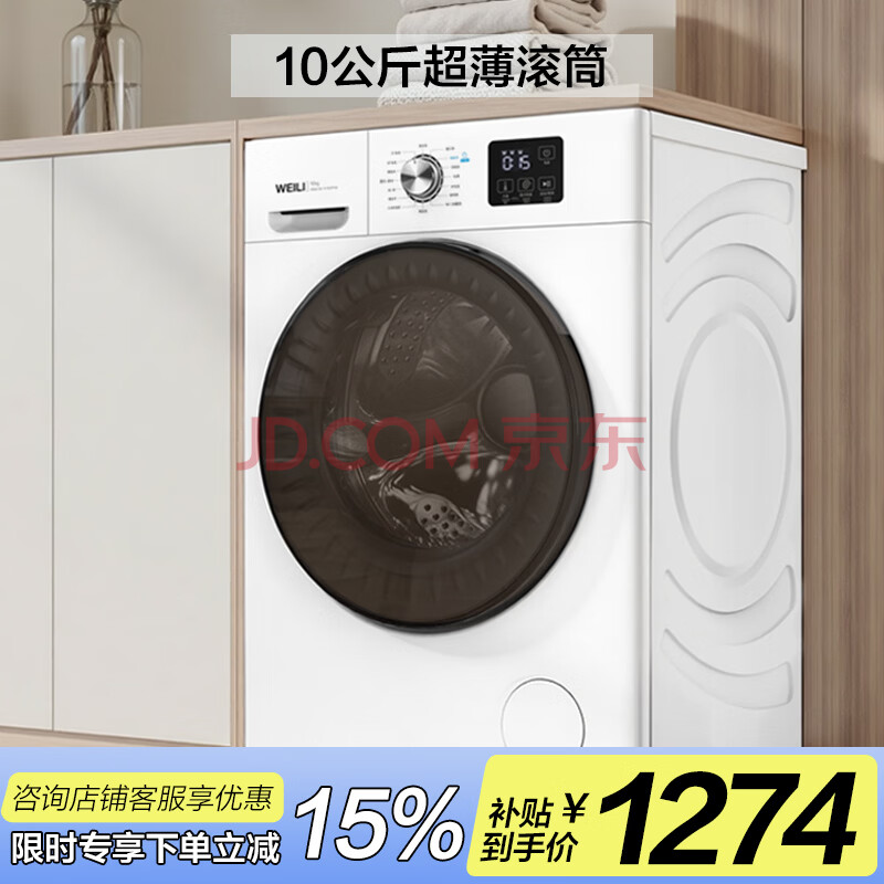 商品相册:威力(WEILI)滚筒洗衣机 10KG全自动洗烘一体 超薄变频一级 巴氏除菌送装一体XQG100-1016DPHX第1张/共7