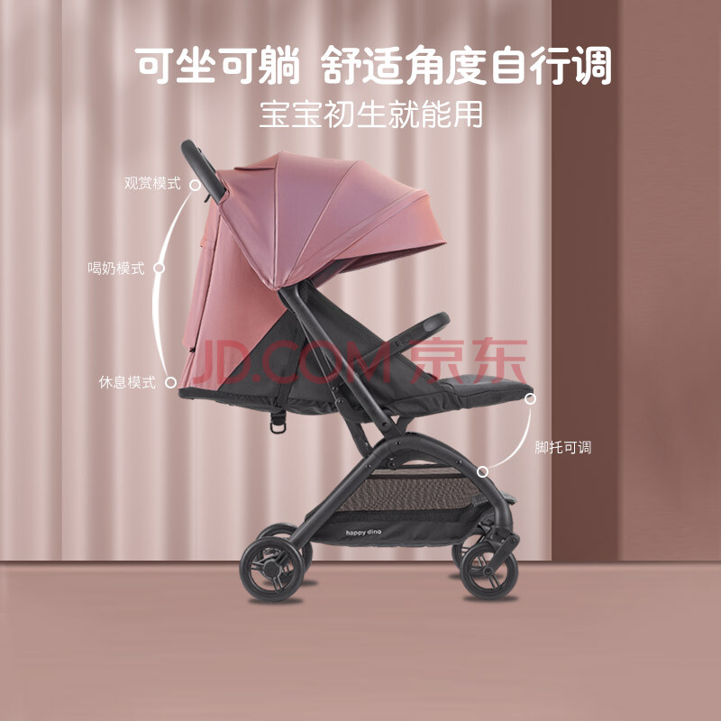商品相册:小龙哈彼(Happy dino)婴儿推车可坐可躺轻便折叠可登机宝宝推车极光粉LD650-A-K039P第