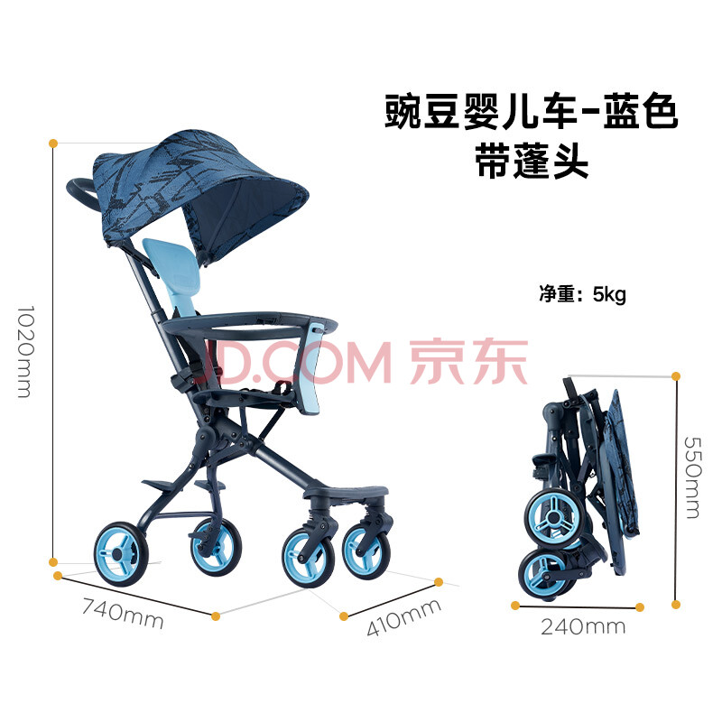 商品相册:小龙哈彼(Happy dino)溜娃神器轻便折叠婴儿推车宝宝婴儿车蓝色LD700-H第