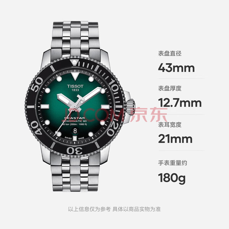 商品相册:天梭(TISSOT)龚俊同款 海星系列男表 瑞士机械男士钢带腕表潜水表生日礼物第