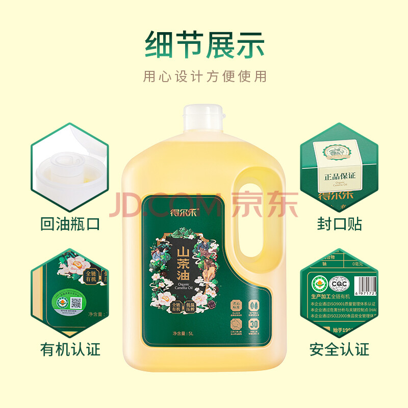 商品相册:得尔乐【保真山茶油】山茶油5L 有机油茶籽油 低温压榨食用油第1张/共9