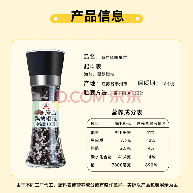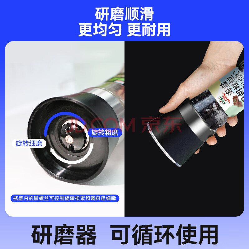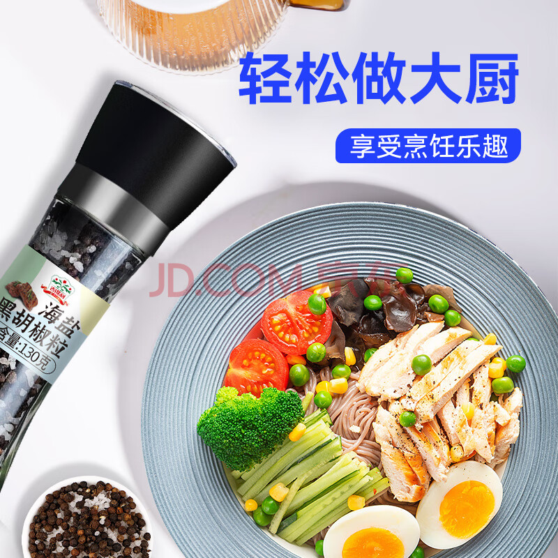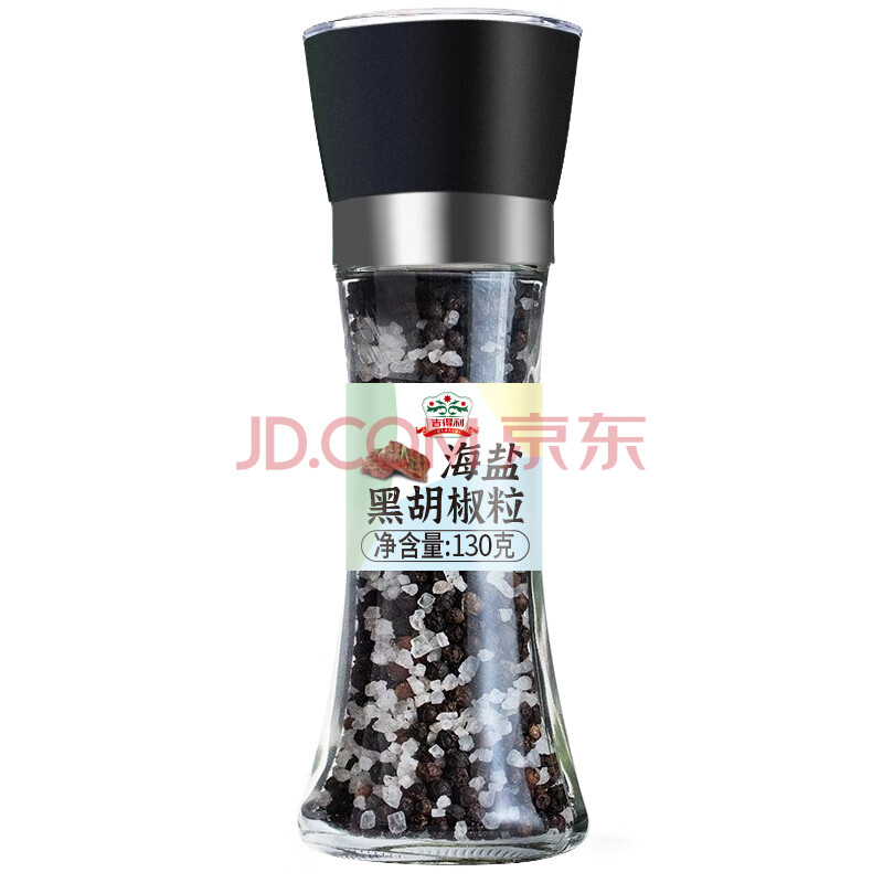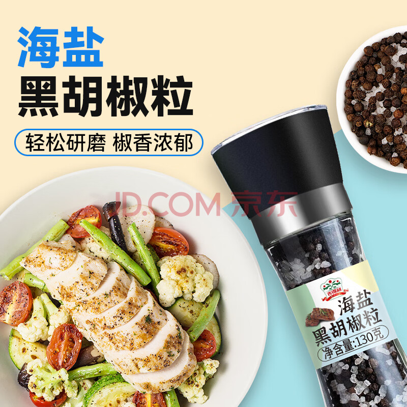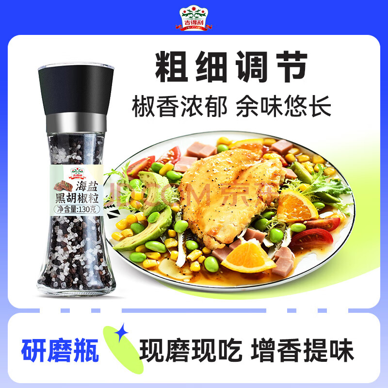 商品相册:吉得利海盐黑胡椒粒研磨瓶130g 低脂轻食西餐牛排鸡胸肉烧烤健身餐调料第1张/共9