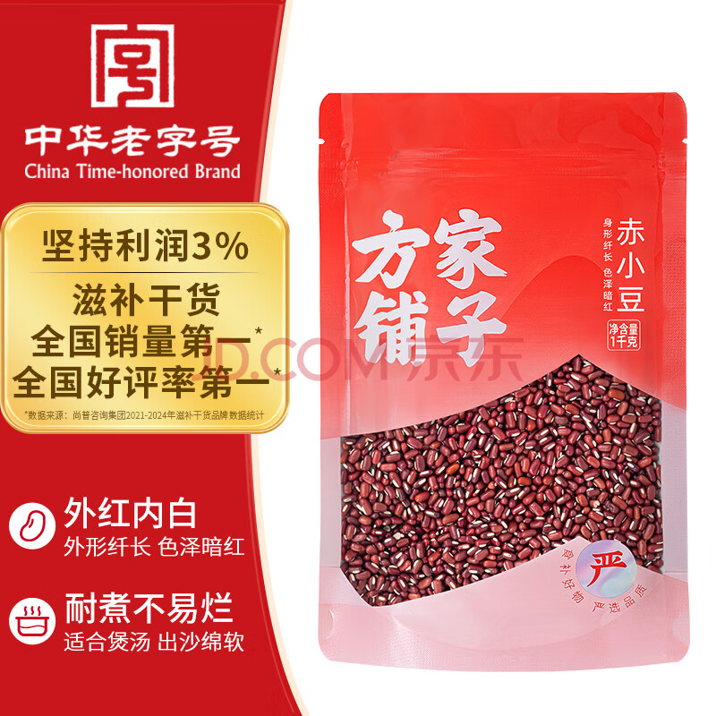 商品相册:方家铺子中华老字号 赤小豆2斤 五谷杂粮 粗粮 长粒赤小豆 第