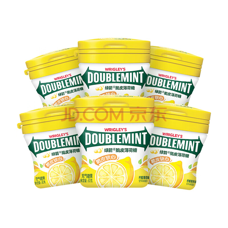 商品相册:绿箭 薄荷糖 脆皮软心糖 柠檬薄荷味80g*6瓶 清新口气糖 休闲零食糖果第1张/共8