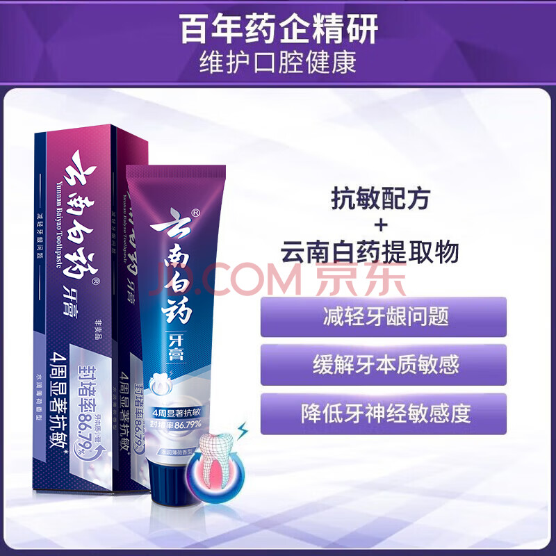 商品相册:云南白药牙膏高端系列抗敏感套装护龈清新口气缓解牙齿敏感水润薄荷150g*2第