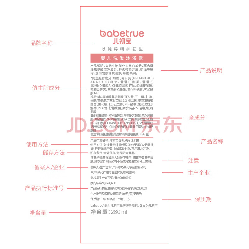 商品相册:儿初宝(babetrue)婴儿洗发水沐浴露二合一儿童泡泡浴宝宝新生儿洗护温和无泪280ml第