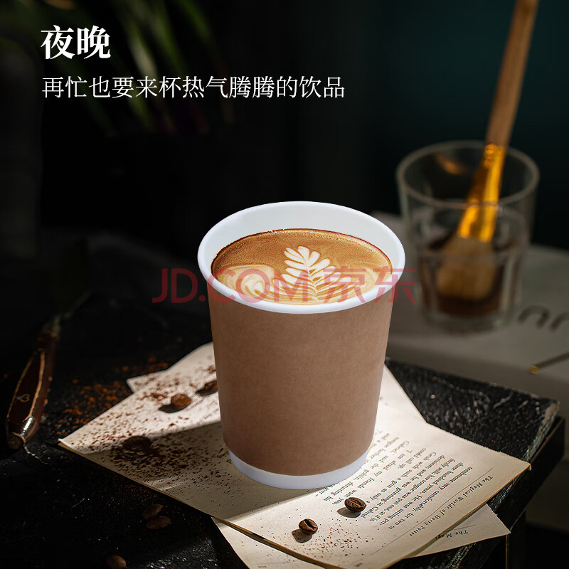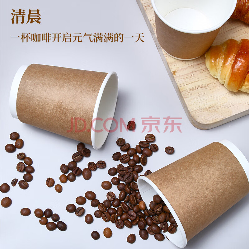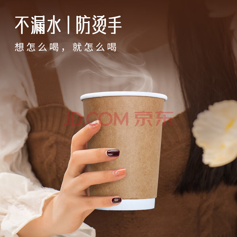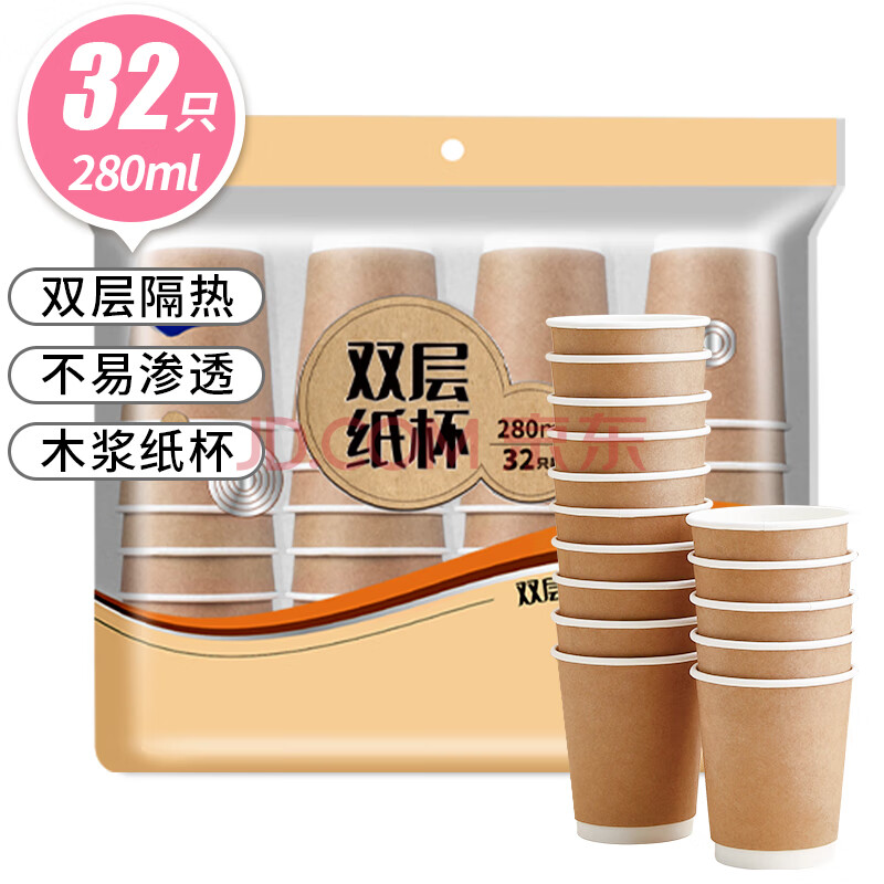 商品相册:优奥一次性杯子280ml*32只牛皮纸外层双层加厚办公家用无盖咖啡杯第1张/共7