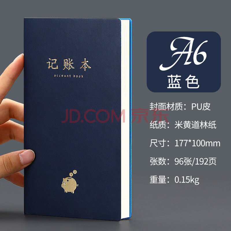 商品相册:嘉然恒 A6记账本家庭流水理财笔记本本子小号随身生活收入支出明细家用店铺商用便捷多功能记账簿-深蓝色第