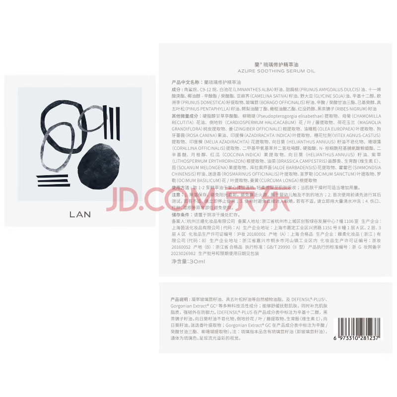 商品相册:蘭(LAN)【田曦薇代言】兰琉璃油精华油修护舒缓退红维稳温和保湿30ml 第