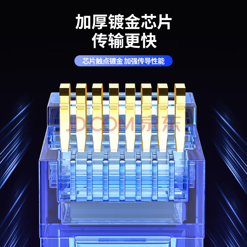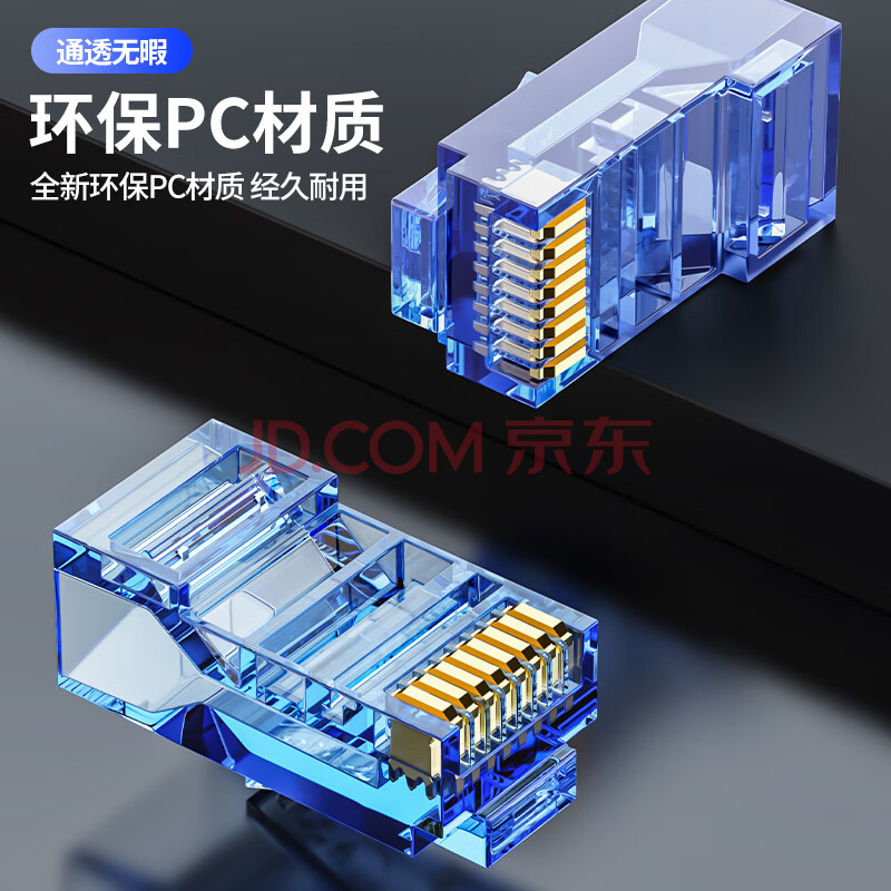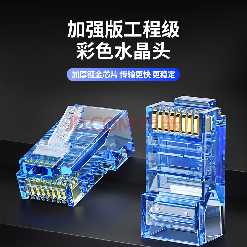 商品相册:CNCOB超五类水晶头工程级彩色非屏蔽镀金纯铜rj45网线接头超5类水晶头 蓝色100个/盒 CN-BE-102M2-23AC第