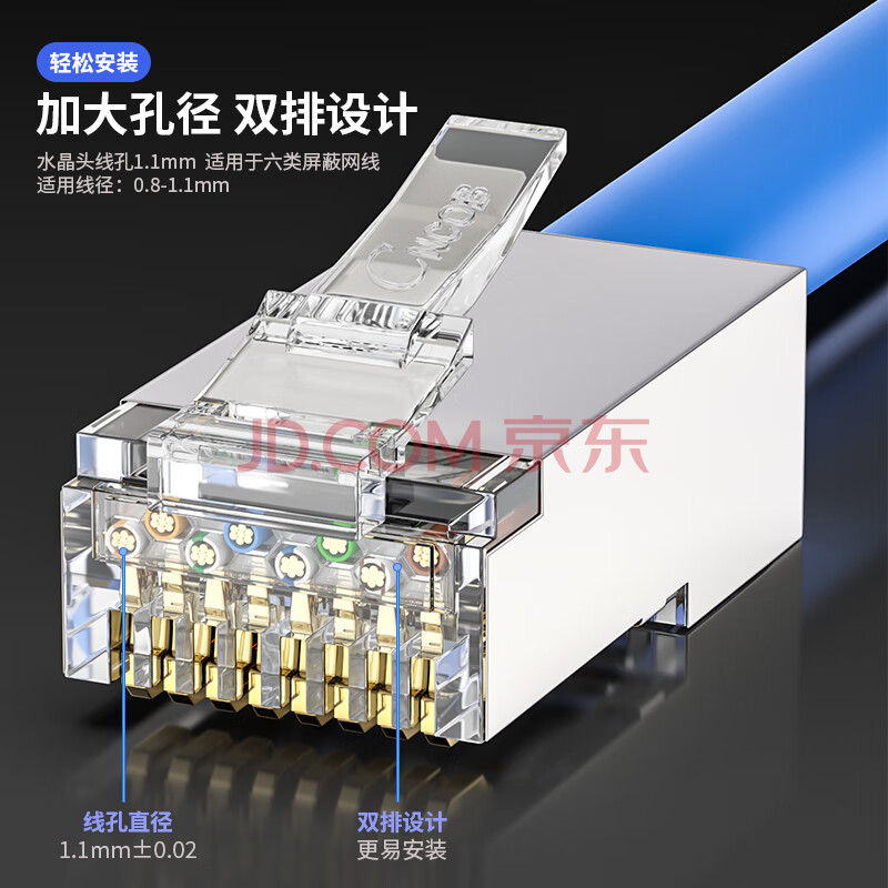 商品相册:CNCOB六类水晶头屏蔽工程级千兆网络镀金rj45网线接头cat6类水晶头 30个/袋 CN-2001P第