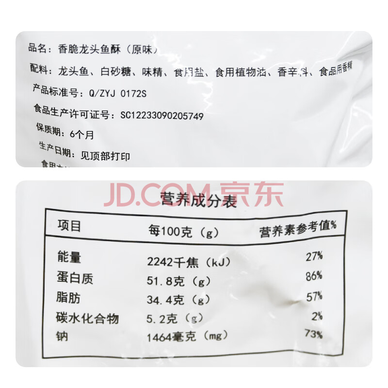 商品相册:明珠 香脆龙鱼酥原味龙头鱼酥150g 浙江舟山特产即食海鲜海味零食鱼干第