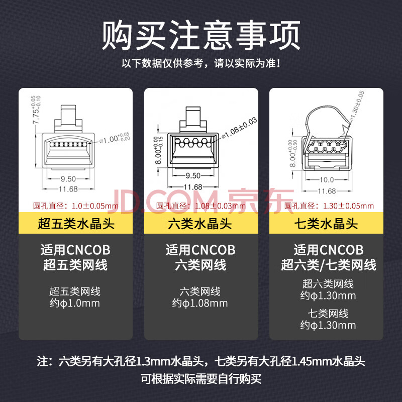 商品相册:CNCOB超五类水晶头非屏蔽工程级镀金纯铜cat5e家用网络监控rj45网线接头超5类水晶头 100颗/盒 CN-1001第