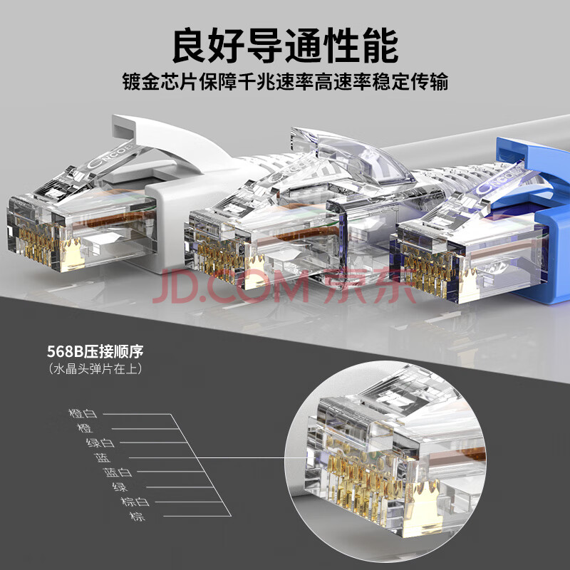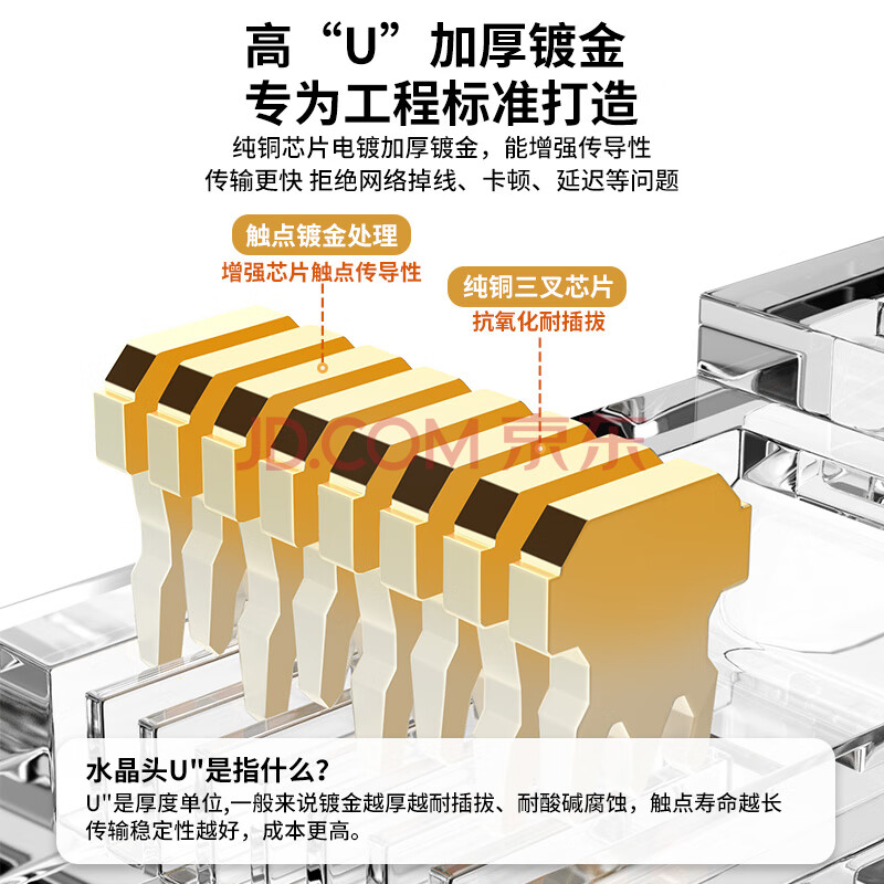 商品相册:CNCOB六类水晶头工程级非屏蔽千兆网络50U镀金rj45电脑网线接头cat6类水晶头 100颗/盒 CN-2001-50U第