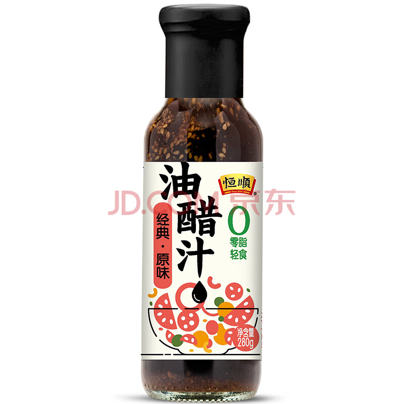 商品相册:恒顺经典原味 油醋汁280g 零脂 健身轻食水果蔬菜沙拉酱汁第
