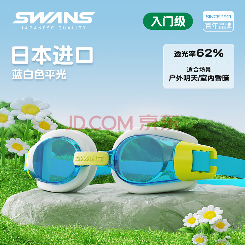 商品相册:SWANS儿童泳镜泳帽进口高清防水防雾男女童游泳套装SW29蓝白熊猫第