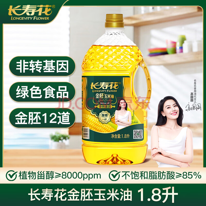 商品相册:长寿花金胚玉米油 1.8L 非转基因压榨一级 烘焙家用食用油 粮油第