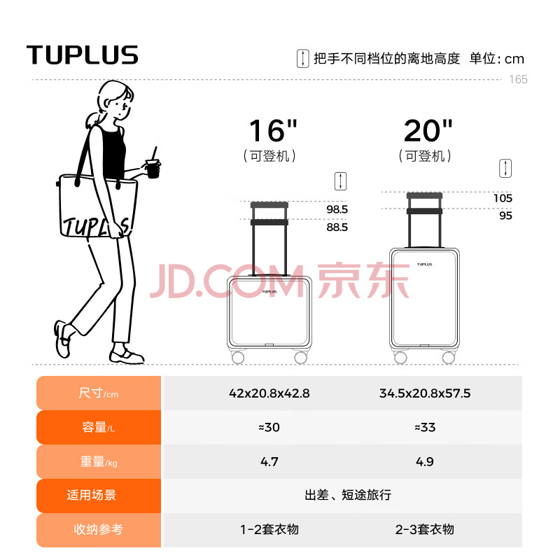 商品相册:途加TUPLUS 前开盖行李箱拉杆箱铝镁合金商务出差旅行箱 20英寸深海蓝第