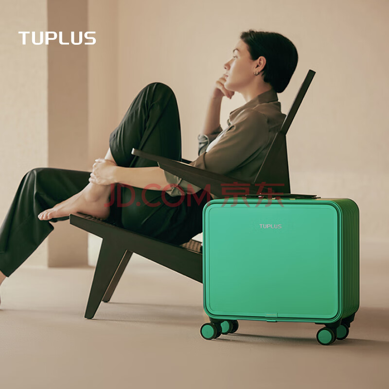 商品相册:途加TUPLUS 前开盖行李箱拉杆箱铝镁合金商务出差旅行箱 16英寸极光绿第