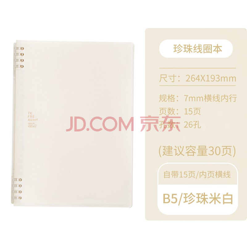 商品相册:锦宫(KINGJIM)B5活页本商务办公学生记事本笔记本日记本线圈本珍珠米白9855TTE-GSR第