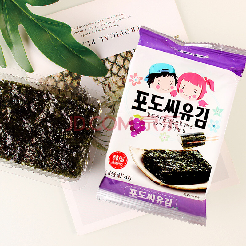 商品相册:Zek韩国进口 葡萄籽海苔即食追剧休闲儿童零食 出游大礼包 4g*18包第