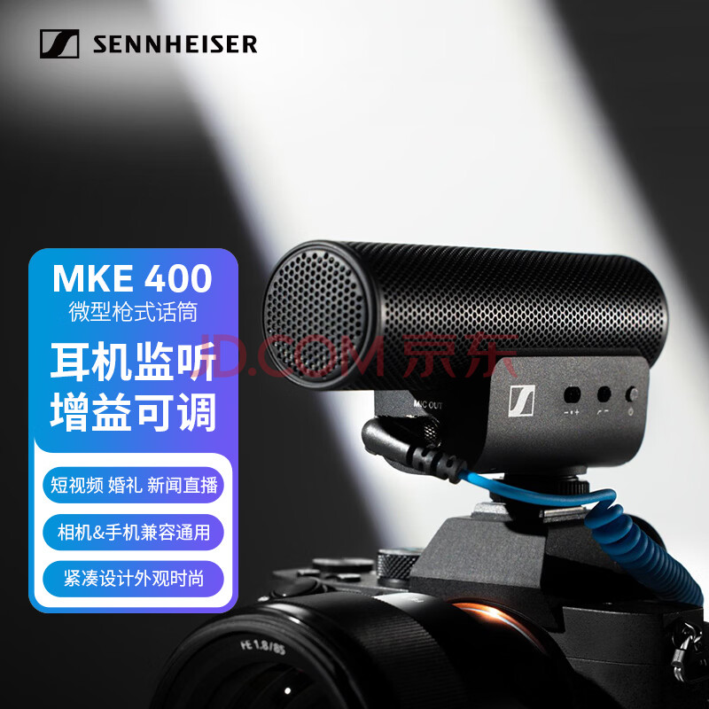 商品相册:森海塞尔 MKE400 枪式麦克风超心型指向枪式vlog单反相机手机收音降噪话筒室内收音 直播第