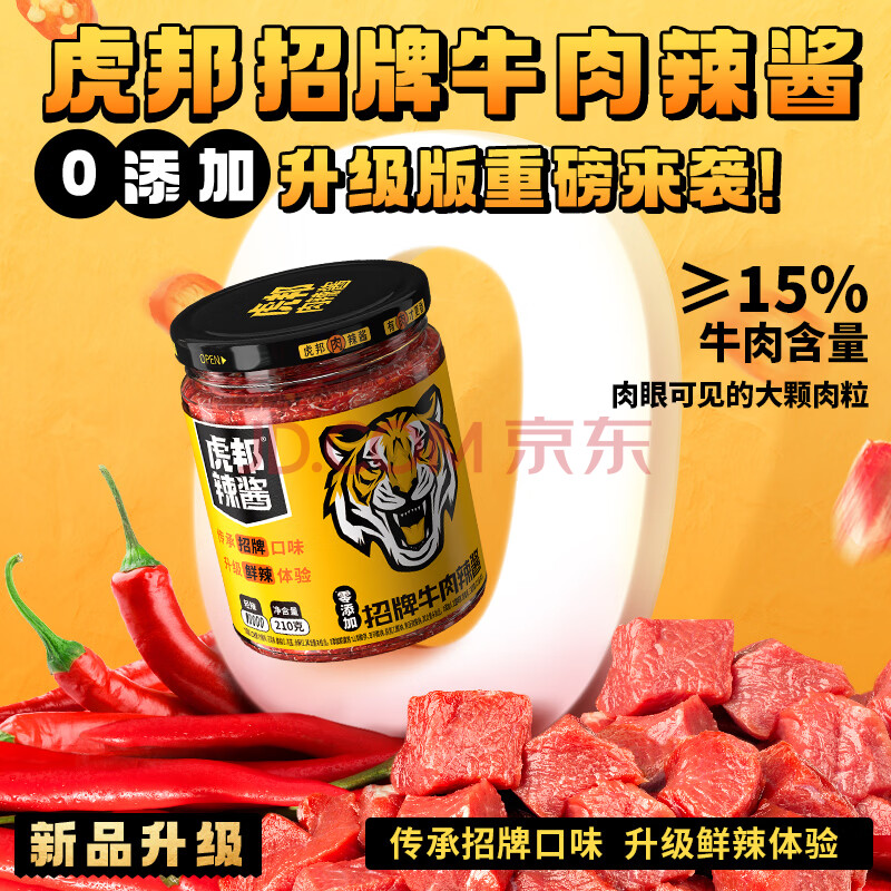 商品相册:虎邦辣椒酱 招牌牛肉酱210g15%肉含量下饭菜拌饭拌面烧烤厨房第