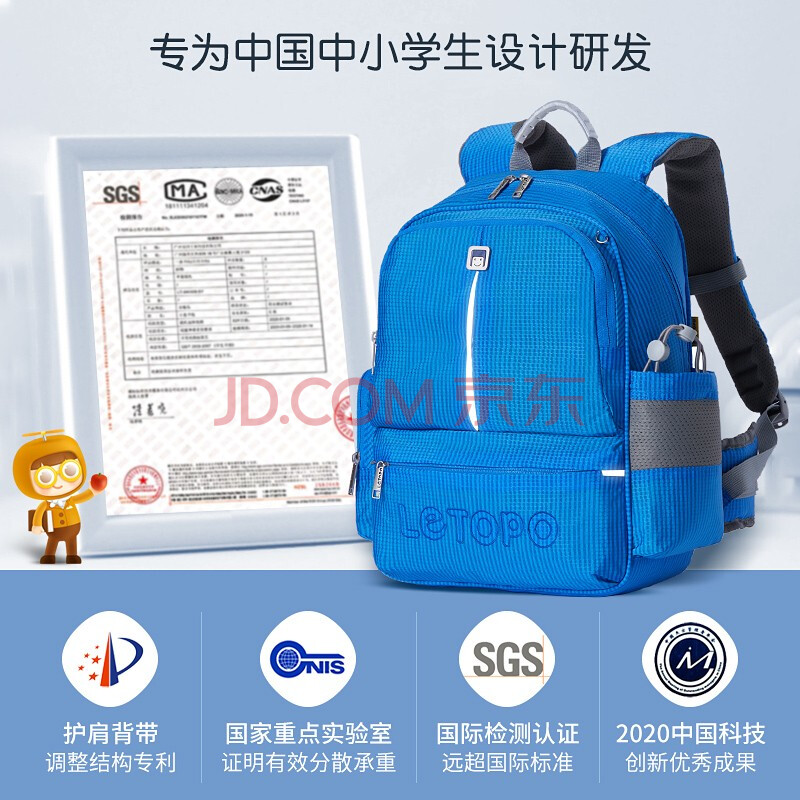 商品相册:letopo乐同书包减压护脊书包小学生4-6年级分层无异味牛顿中童蔚蓝色第
