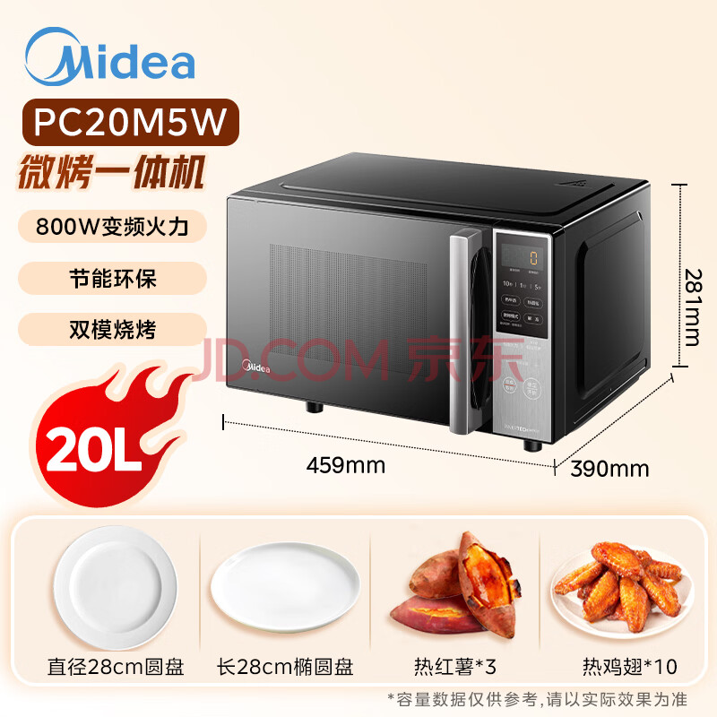 商品相册:美的(Midea)微碳系列 家用微波炉烤箱一体机 杀菌智能家用 800W速热20L大容量 6代变频 (PC20M5W)第