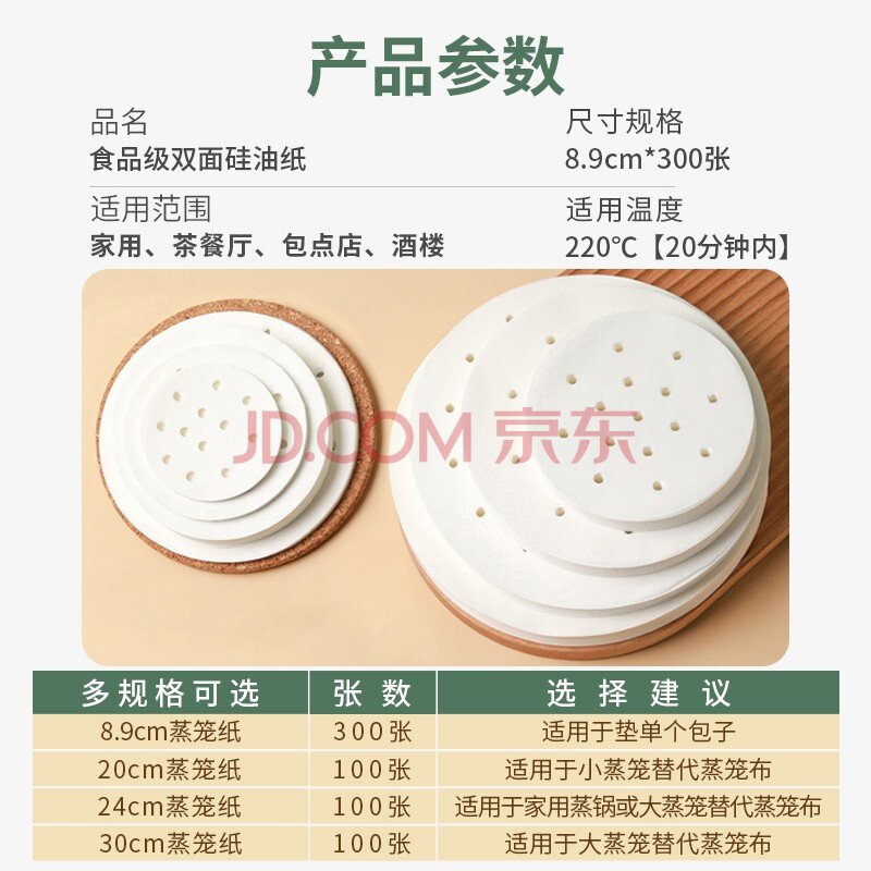 商品相册:登比蒸笼纸包子垫纸蒸馒头面包垫纸蒸屉纸一次性蒸笼布圆形食品级油纸第