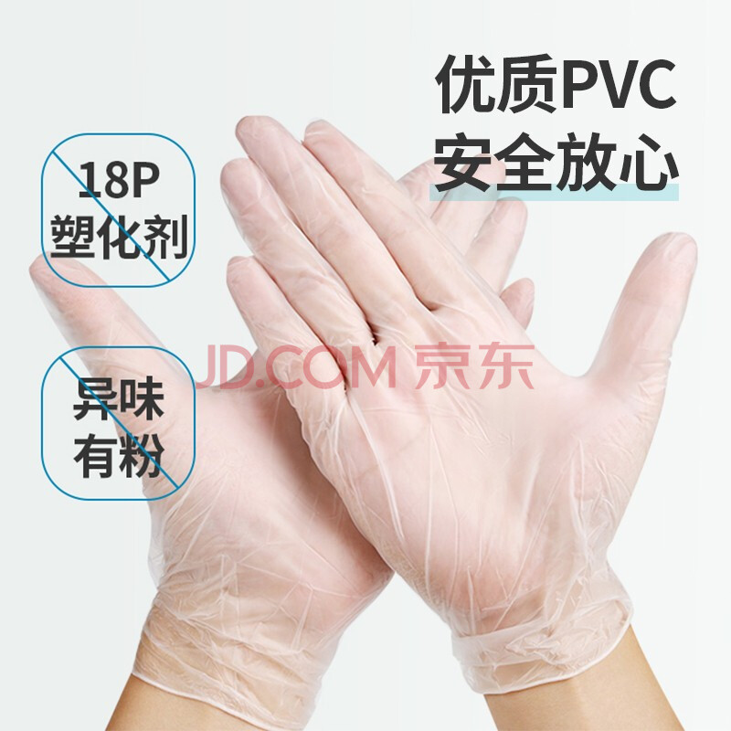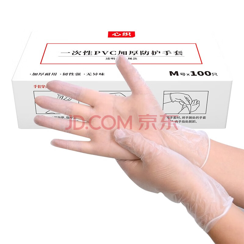商品相册:心织 一次性手套PVC食品级100装加厚透明防护烘焙餐饮家务厨房手套M码第