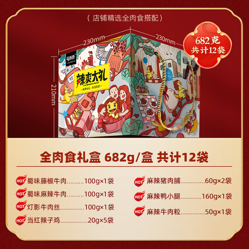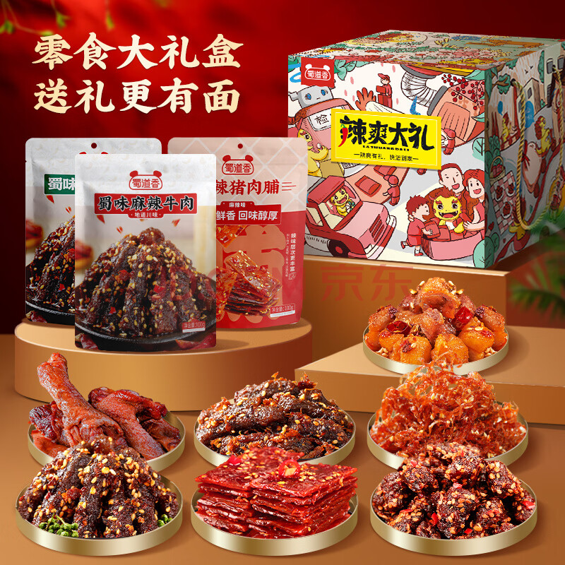 商品相册:蜀道香纯肉食大礼盒 682g 肉干肉脯 麻辣 夜宵特产 卤味解馋小零食 送礼第
