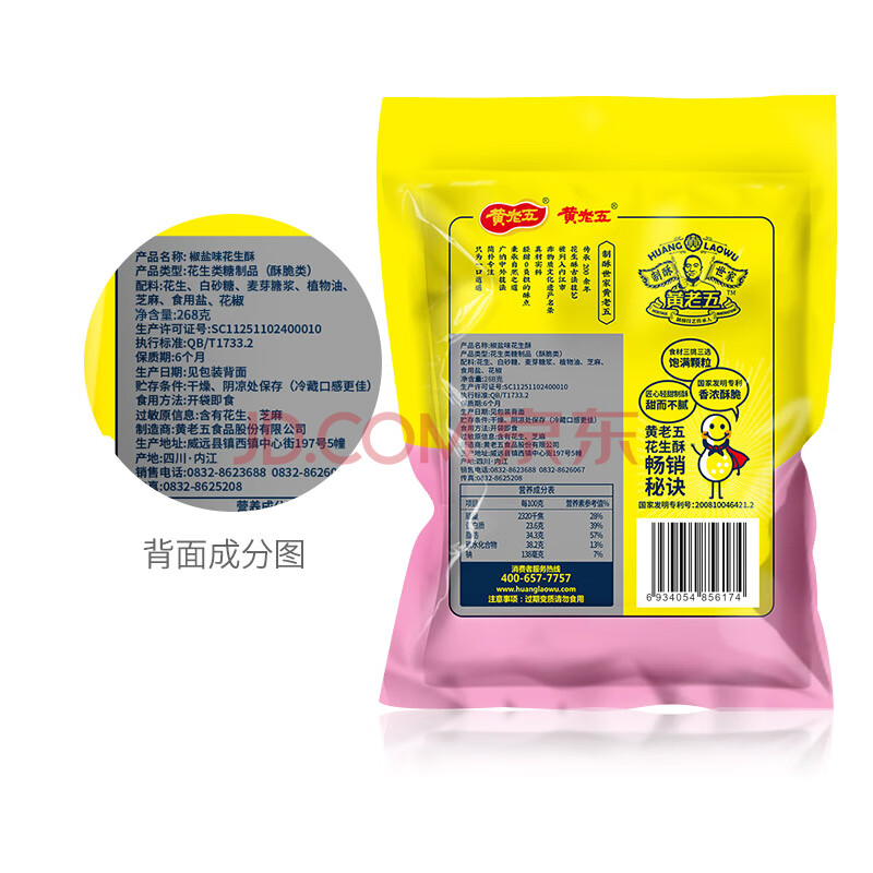 商品相册:黄老五 酥糖糖果 花生酥268g/包椒盐味 喜糖伴手礼 四川特产 休闲零食 第